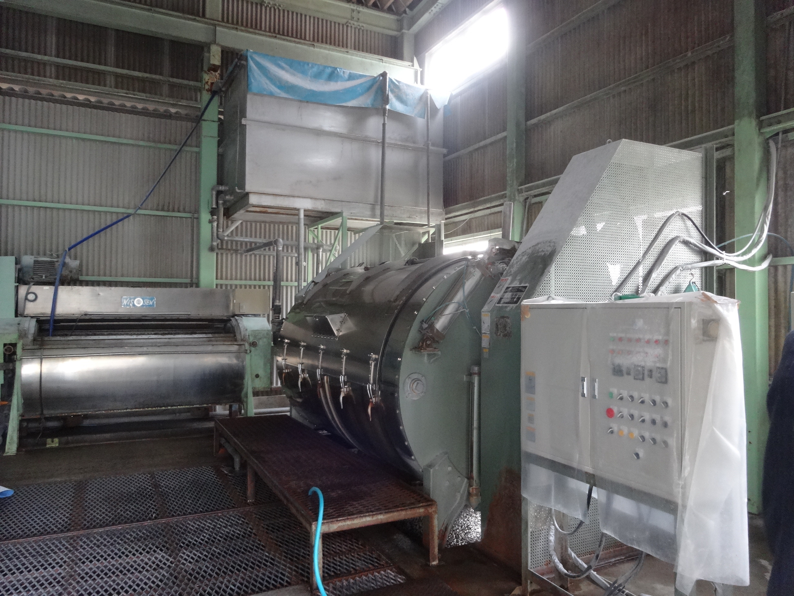 ①大きな洗濯機で洗います。