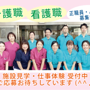 | 仕事内容 | ①介護職(介護老人福祉施設勤務) 正職員 ②介護職(介護老人福祉施設勤務) パート ③看護職(介護老人福祉施設勤務) 正職員 ④介護職(介護老人福祉施設勤務) パート ⑤介護職(デイケア勤務) 正職員 ⑥介護職(デイケア勤務) パート |