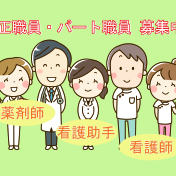 | 仕事内容 | ①薬剤師 正職員 ②看護助手 正職員・パート ③看護師・准看護師 正職員・パート |